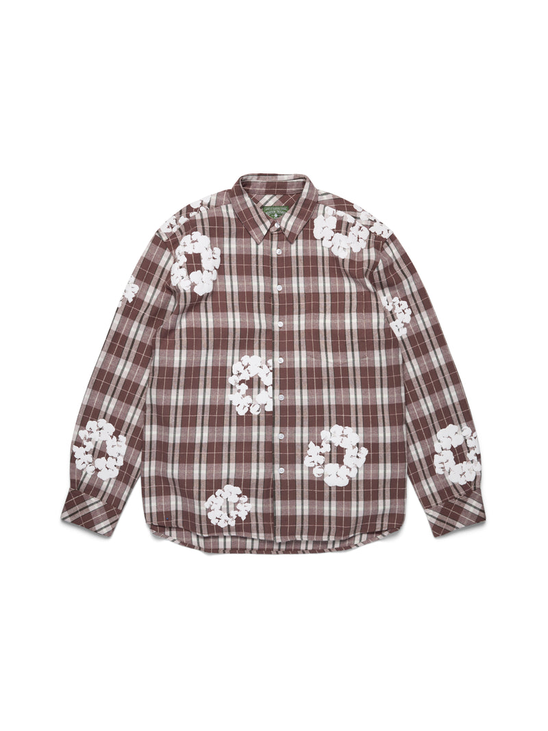 Cotton Wreath Flannel Shirt Brown Plaid
