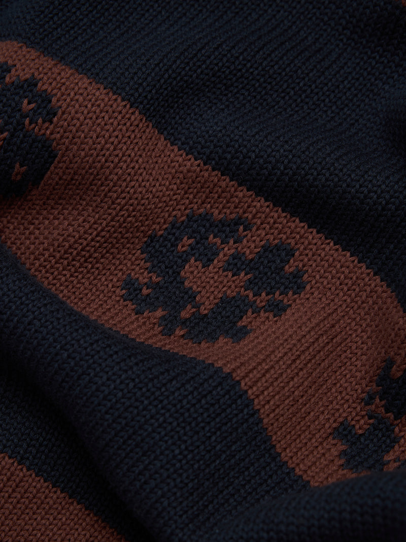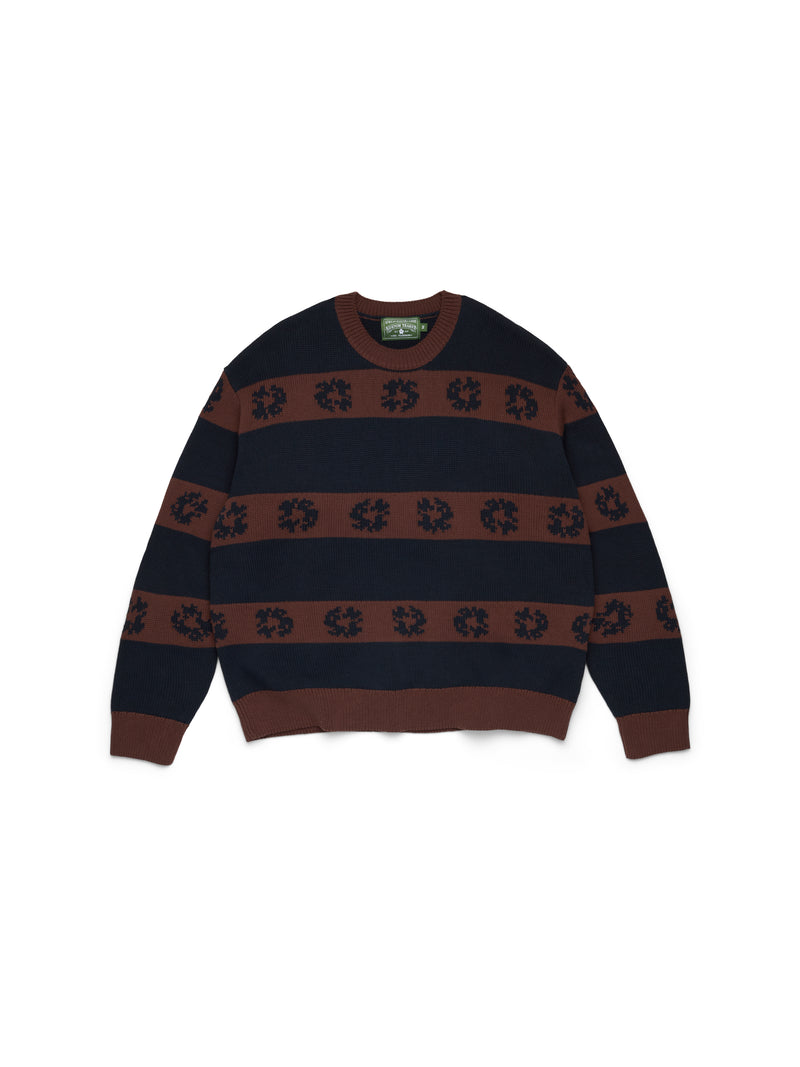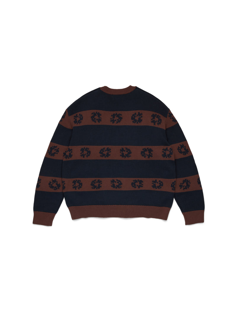 Produced in 100% Cotton and cut to a regular fit, our Cotton Wreath Striped Sweater features contrasting stripes complete with micro Cotton Wreaths across the full length of the body and sleeves.