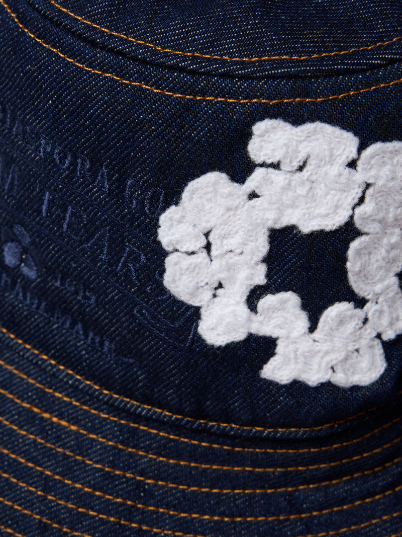 Denim Cotton Wreath Bucket Hat Washed Indigo