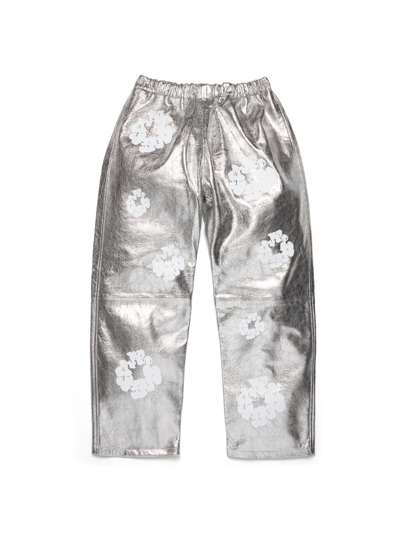 Leather Cotton Wreath Pants Silver
