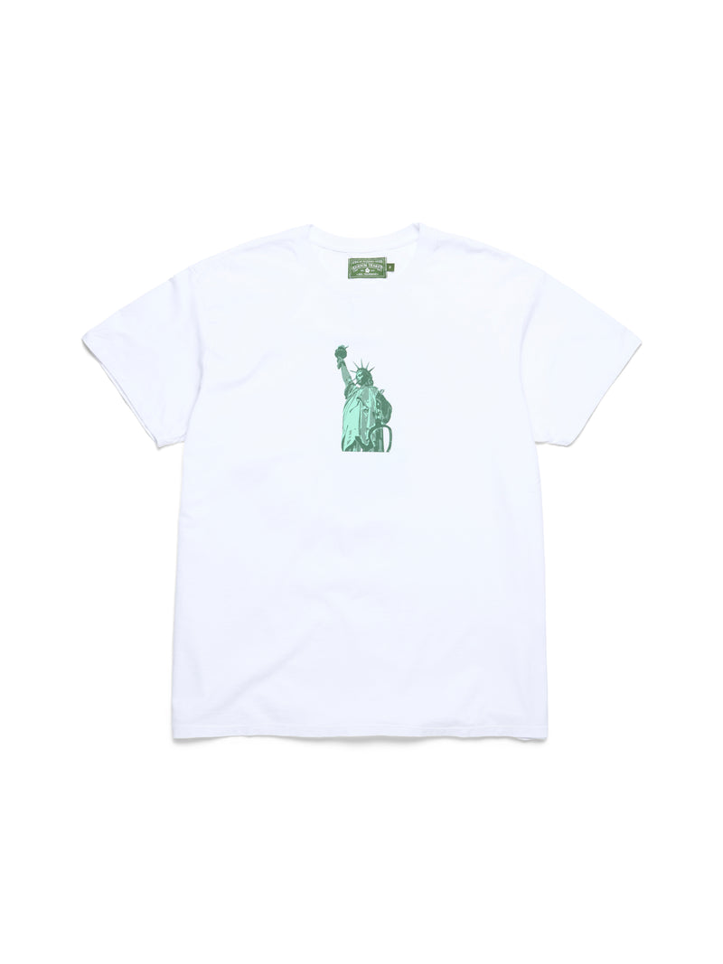 Produced in 100% cotton and cut to a regular fit, our Libertas Abolition SS Tee features a screenprinted graphic of the ‘Libertas’ Lady Liberty. In her left hand, she holds shackles, as originally intended by sculptor Frédéric-Auguste Bartholdi to commemorate the end of slavery; a monument intentionally built to celebrate emancipation, relocated to her feet and obscured before completion following American funders’ rejection of Bartholdi’s vision.